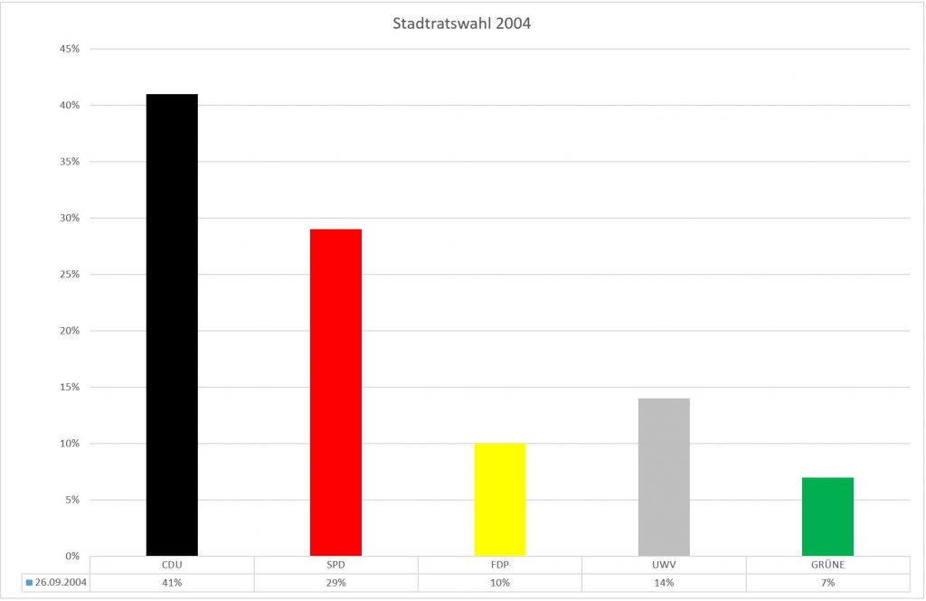 Ergebnisse der Ratswahlen seit dem Jahr 2004.